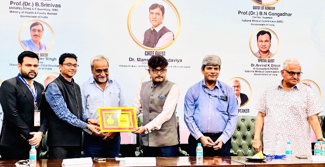 कार्यक्रम के शुभारंभ में दीप प्रज्ज्वलन के बाद डॉ. मांडविया ने अपने उद्बोधन में कहा, “भारत के डॉक्टरों ने कोविड-19 महामारी के दौरान प्रहरी की भूमिका निभाई। उनकी सेवा भावना और प्रतिबद्धता ही भारत को 2047 तक एक स्वस्थ और विकसित राष्ट्र बनाने के प्रधानमंत्री नरेंद्र मोदी के विजन को साकार करेगी।”