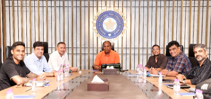 बीसीसीआई ने अपडेट देते हुए बैठक की तस्वीर साझा की है। इस बैठक में चयन समिति के अध्यक्ष अजीत अगरकर समेत सभी चयनकर्ता और भारतीय टी20 टीम के कप्तान सूर्यकुमार यादव मौजूद हैं। बैठक की अध्यक्षता बीसीसीआई सचिव देवाजीत सैकिया कर रहे हैं।