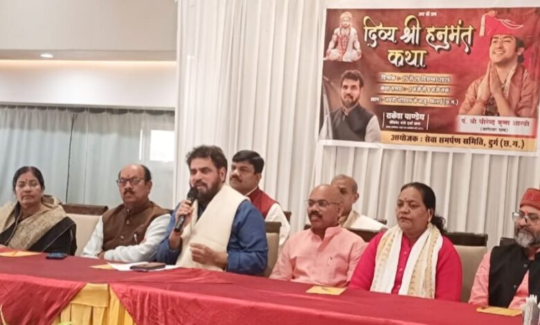 जिसे लेकर श्री हनुमंत कथा के आयोजक एवं छत्तीसगढ़ खादी ग्राम उद्योग आयोग के अध्यक्ष राकेश पाण्डेय द्वारा होटल अमित इंटरनेशनल में आयोजित प्रेस वार्ता को संबोधित करते हुए कहा कि कथा के अंतर्गत 27 दिसंबर को विशेष दिव्य दरबार का आयोजन होगा, जिसमें पंडित शास्त्री जी श्रद्धालुओं की पर्ची निकालकर समस्याओं के समाधान हेतु मार्गदर्शन प्रदान करेंगे।